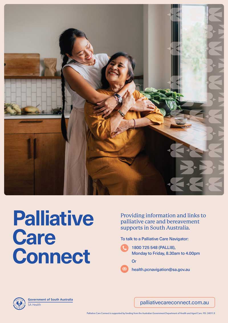 To reach as many South Australians as possible, we need your help to spread the word about Palliative Care Connect. You can download some or all of these visual communications tools for your use. You may like to print a poster for your workplace or share the message through your social media channels.